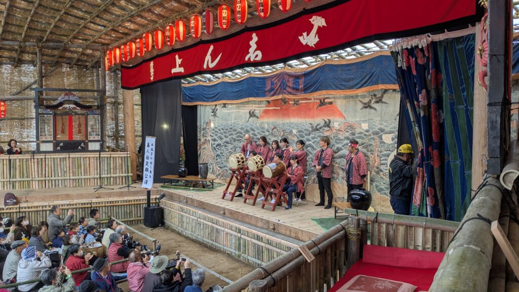 昭和20年(1945年)以来、この舞台の風習は途切れ、数多くの貴重な道具も倉に納められたまま忘れ去られようとしていたところ、1997年、地元住民の並々ならぬ努力により、半世紀ぶりの舞台復元にこぎつけました。以来3年に一度のペースで、2019年までに実に9回の舞台組立てと地芝居公演を実現し、ありがたいことにさまざまな団体・組織から多くの評価や賞賛をいただきました。