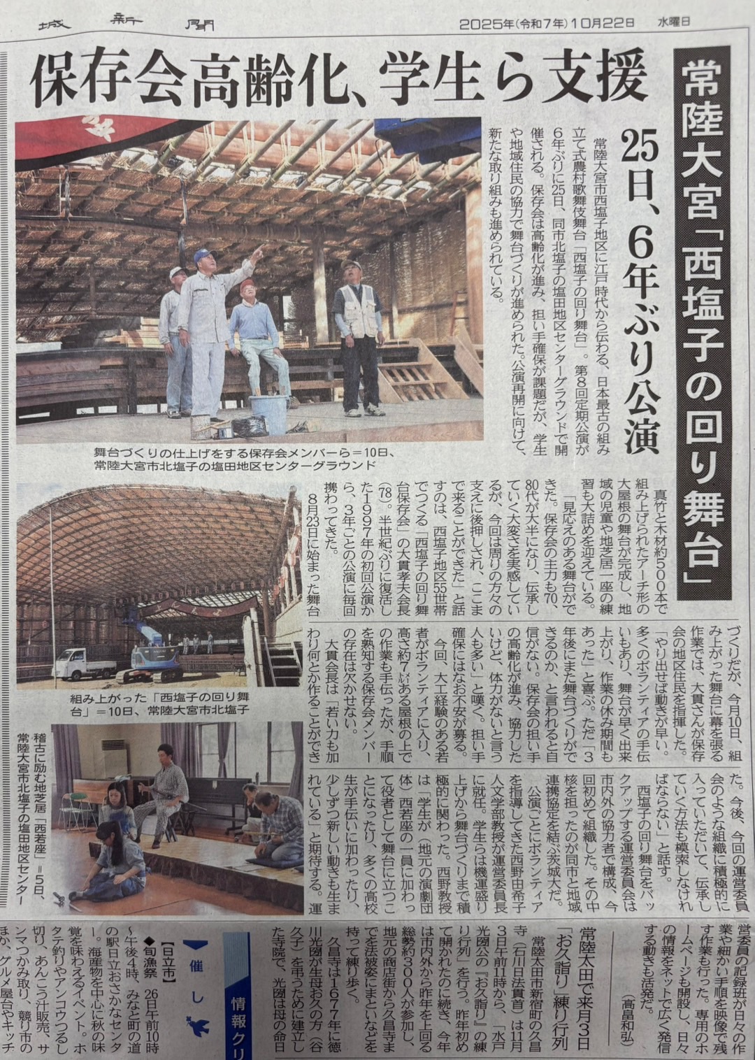 半世紀ぶりに復活した「西塩子の回り舞台」、継続の危機!?