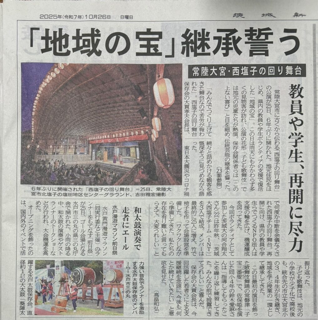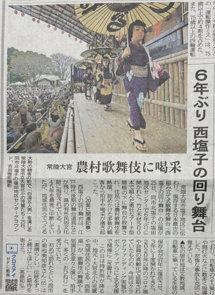 - 【茨城新聞】農村歌舞伎に喝采 西塩子の回り舞台 常陸大宮
