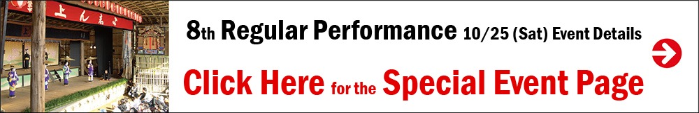 Since 1945, this stage tradition was no longer continued, and numerous valuable tools were stored away in a warehouse, nearly forgotten. However, in 1997, through the extraordinary efforts of the local residents, the stage was restored for the first time in half a century. Since then, at a pace of once every three years, the stage has been assembled and Jishibai (Local Kabuki) performances held 9 times by 2019. We are very grateful that many groups and organizations have offered their recognition and praise.